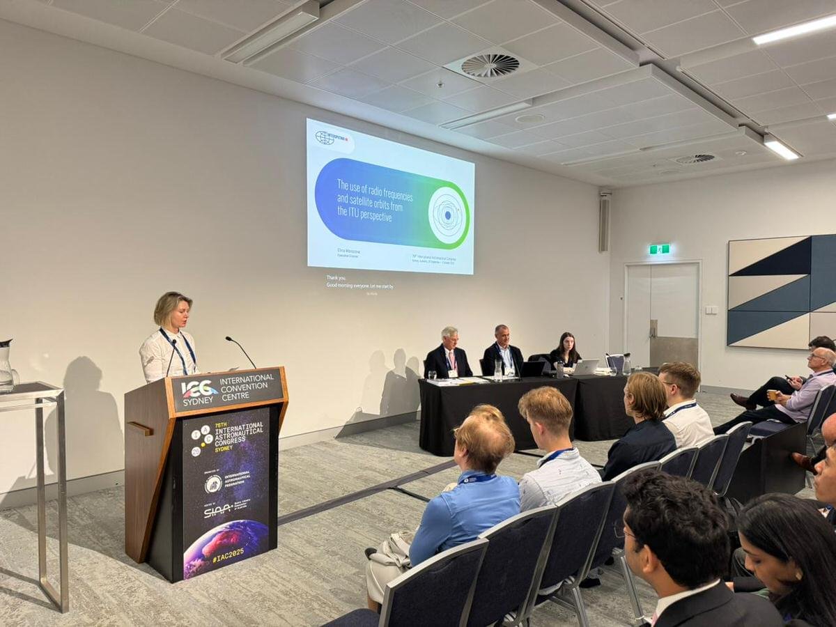 At the IAC 2025, Intersputnik Executive Director Elina Morozova spoke at a session of the Colloquium on the Law of Outer Space, which discussed issues of promoting the use of outer space, and especially near-Earth, for peaceful purposes, in accordance with the letter and spirit of the international Outer Space Treaty, as well as various threats to the long-term sustainability of space activities. Elina Morozova described certain aspects of regulating the use of radio frequencies and satellite orbits from the perspective of the International Telecommunication Union (ITU) regime. The sustainable use of near-Earth orbits for satellite communications and broadcasting is particularly important for achieving the 17 UN Sustainable Development Goals. Satellite networks and communication systems used to connect the unconnected around the world are making a huge contribution to narrowing the digital divide. In this regard, one of the fundamental principles of the ITU regulations, mandatory for compliance by states and operators, deserves special attention: it prohibits causing harmful interference to internationally recognised frequency allocations. All radio equipment, regardless of its type and purpose, is required to take measures to prevent harmful interference that impedes the stable operation of civil and commercial satellite communications and broadcasting systems that provide services to the public and businesses, and that play a key role in preventing and minimising the consequences of natural and man-made disasters. Intersputnik, committed to using space communications to support UN and ITU initiatives to connect the unconnected, promotes the concept of using space for the benefit and in the interests of all countries, as well as the efficient, sustainable and provident use of radio frequencies and satellite orbits for the operation of satellite networks and systems in an interference-free environment. Only legally clear, transparent international regulation of frequency use will allow satellite technologies to become a key factor in achieving the UN Sustainable Development Goals.